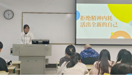 英语2204班举办了以“拒绝精神内耗,活出全新的自己”为主题心理健康教育班会。班会从精神内耗的若干个现实表现入手,引导同学们自主判断在生活中是否会陷入精神内耗。随后,主持人从三个方面向同学们展示了精神内耗对于身体健康、心理健康以及工作生活的影响。班会还通过情景模拟的小游戏,让同学们切身体验精神内耗的感受,并引导大家思考如何正确应对这种情况。