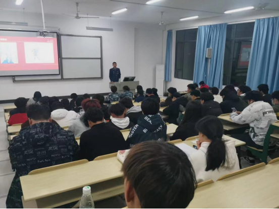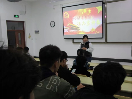 辅导员胡鹏老师作补充发言,他对不同年级段应征入伍所涉及的学业和职业规划进行了梳理,让同学们更理解把个人的前途命运与祖国的安全发展结合起来。