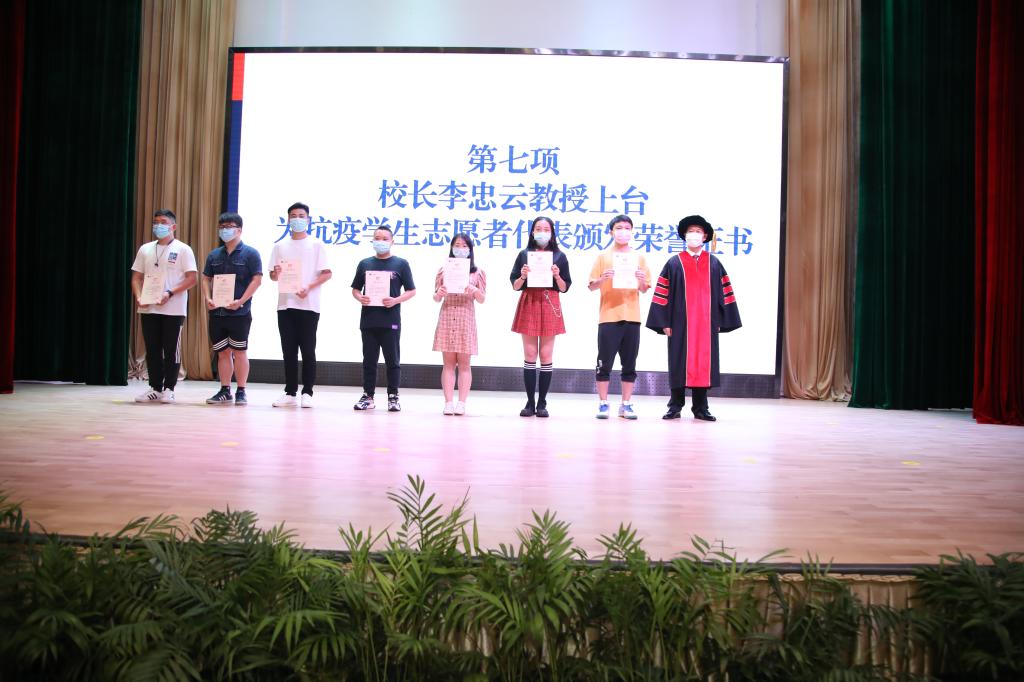 校长李忠云为抗疫学生志愿者颁发荣誉证书