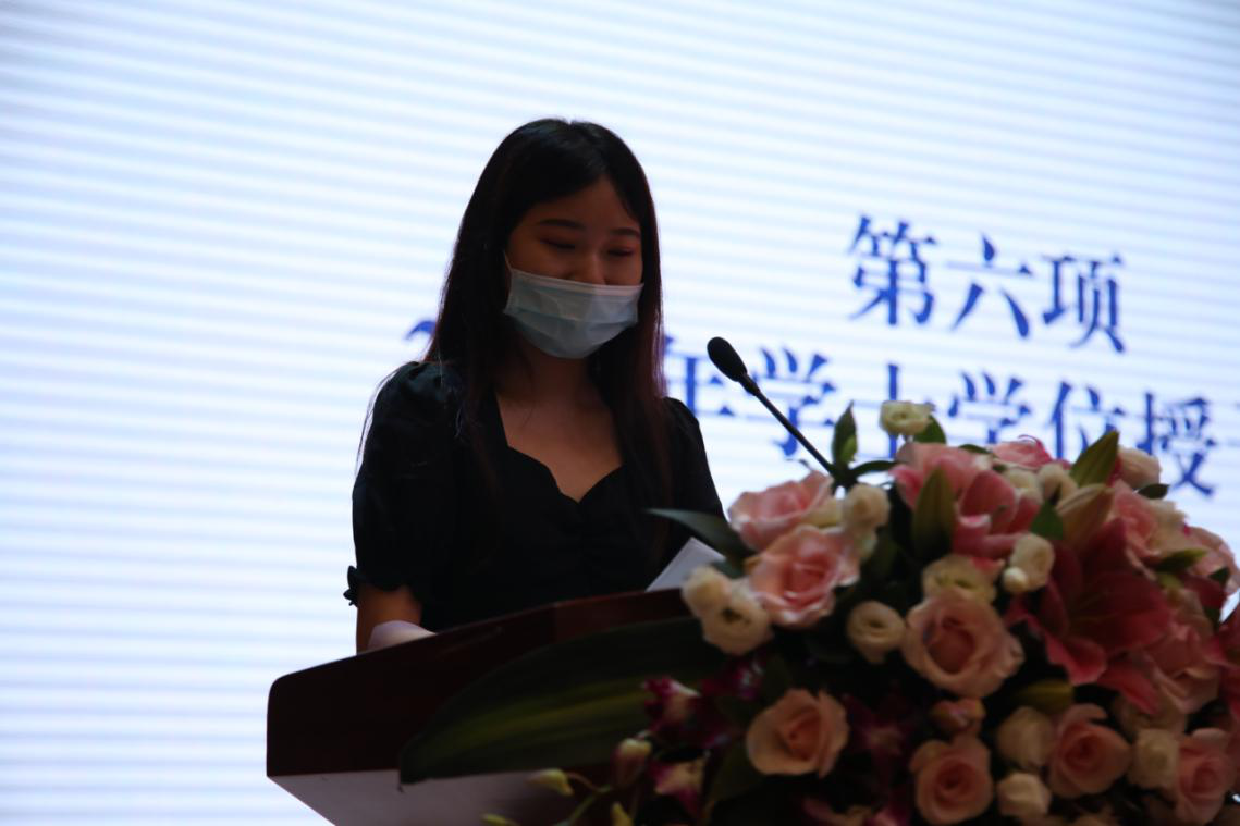 36365线路检测中心入口毕业生代表、优秀毕业生、武汉方舱医院抗疫志愿者邵京杰参加了毕业典礼,优秀毕业生徐玉凡担任毕业典礼主持人。