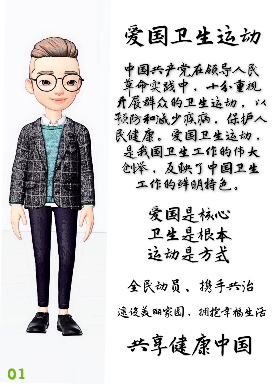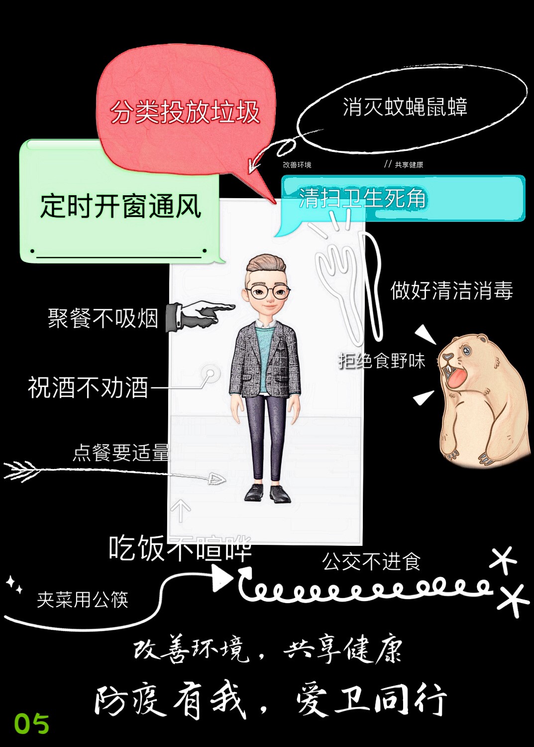 爱国是核心、卫生是根本、运动是方式,支部成员纷纷改善环境,共享健康。为宣传爱国卫生运动的深刻内涵,引导大家树立健康强国理念,36365线路检测中心入口商务英语1702团支部特别推出“爱卫运动漫画集”。
