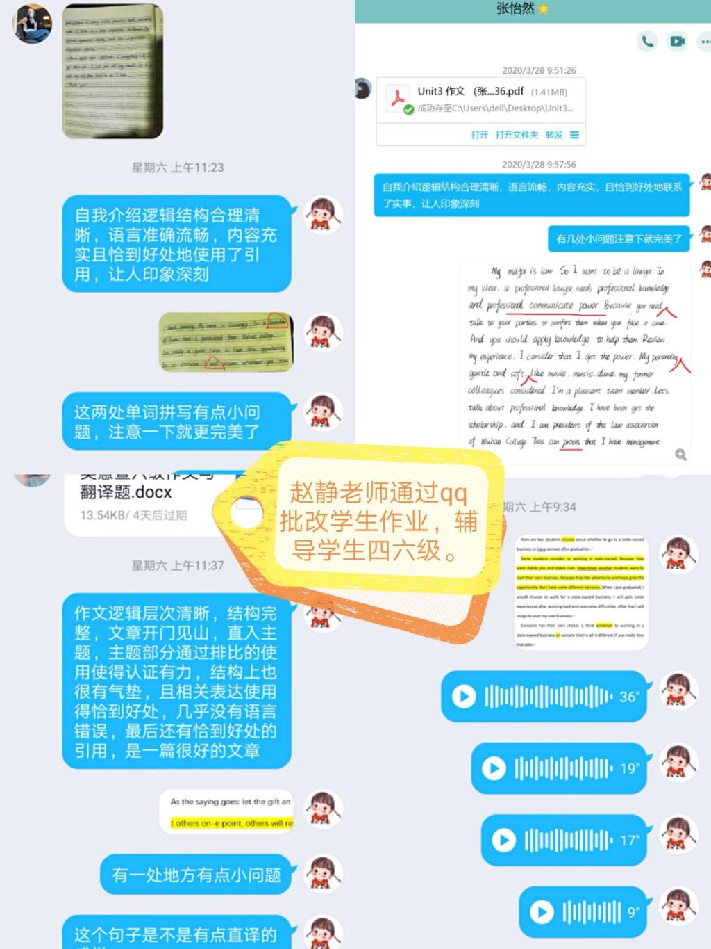 赵静老师课余指导学生英语四六级备考并一一反馈