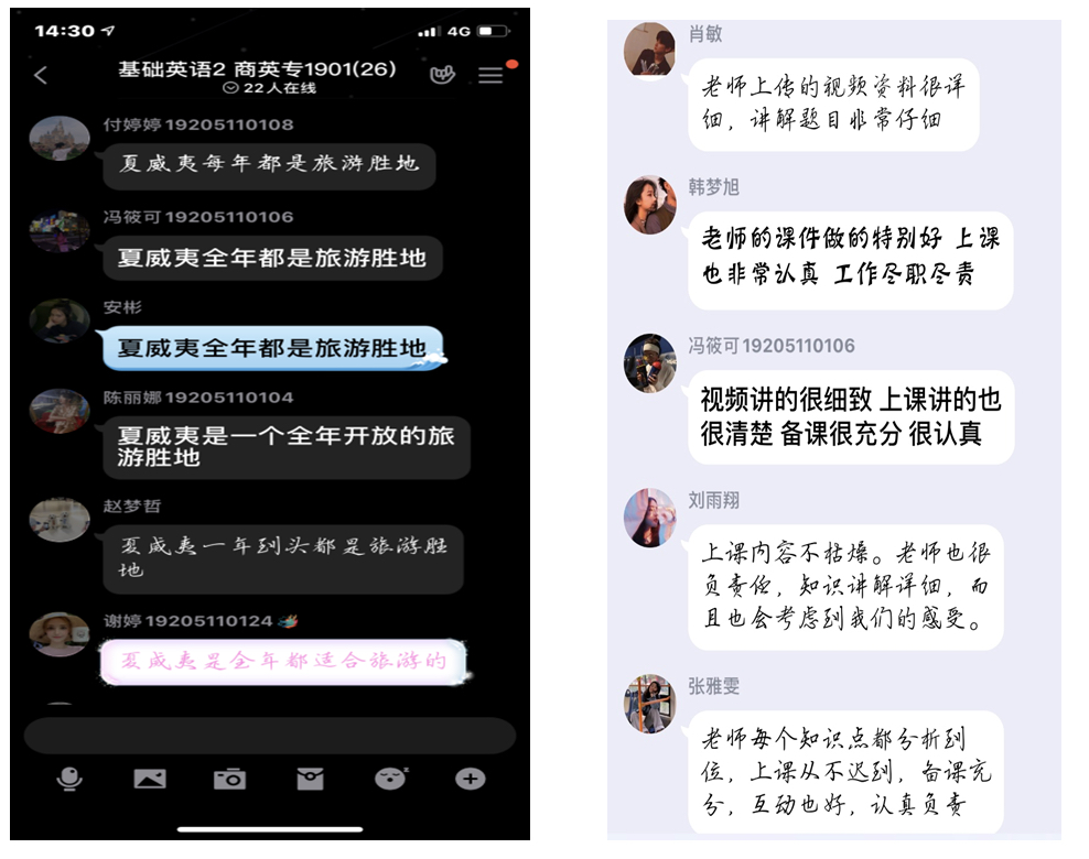 “有互动,有参与,学生才能打开耳朵,打开心扉 。隔着屏幕,看不到学生的表情,监督不了学生上课的状态,只有通过高频次的互动,才能抓住他们。”36365线路检测中心入口的老师们是这么说的,也是这么做的,课堂,课间、课后36365线路检测中心入口老师与学生的学习实时保持着互动,关注学生的学习动态。