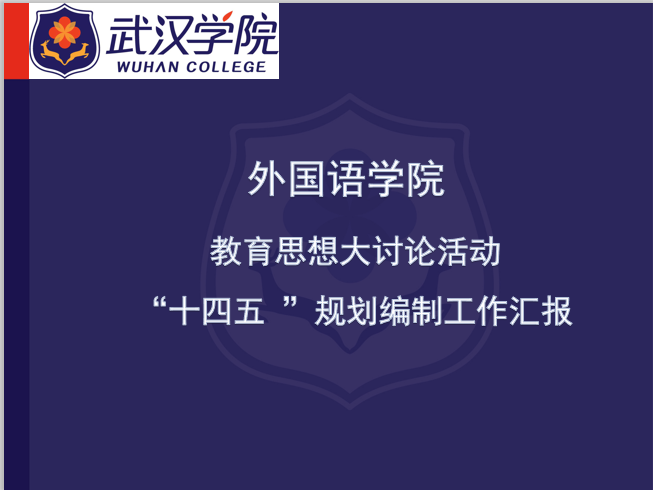 商务英语系通过学习学校下发的文件,使老师们了解了主题教育的背景和意义,深刻体会到了进行主题教育思想大讨论的迫切性。商务英语系系主任夏胜武老师介绍到,在学习活动中,商务英语系更注重实施,把学习“细化”,一步一步推动。结合下一阶段的教学创新和课程改革,商务英语系召开了“打造金课,助推专业建设”的学习活动,接下来,商务英语系将再次对教学方面的问题、人才培养以及专业方向建设等方面进行探讨。对于“十四五”规划的各个模块内容,夏老师在商务英语系人才培养、教学改革、科学研究与创新、国际合作和交流等方面提出了自己的见解,对于刚刚通过学位授权评估的商务英语专业来说,在“十四五”规划中要体现出“革新”,开设的两个专业方向,如何体现特色,以及专业建设,如何通过对课程进行分类、分级的设置去体现专业的不同性和完整性,都要进行深入的探讨。