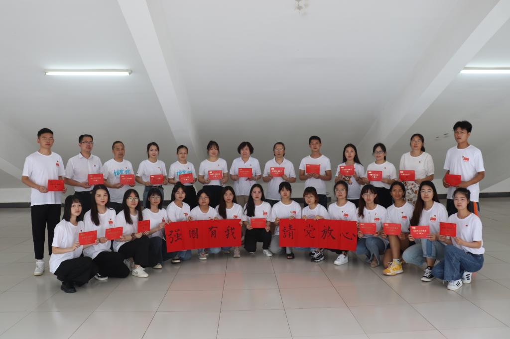 外院师生党员手持政治生日卡共贺党的百年华诞