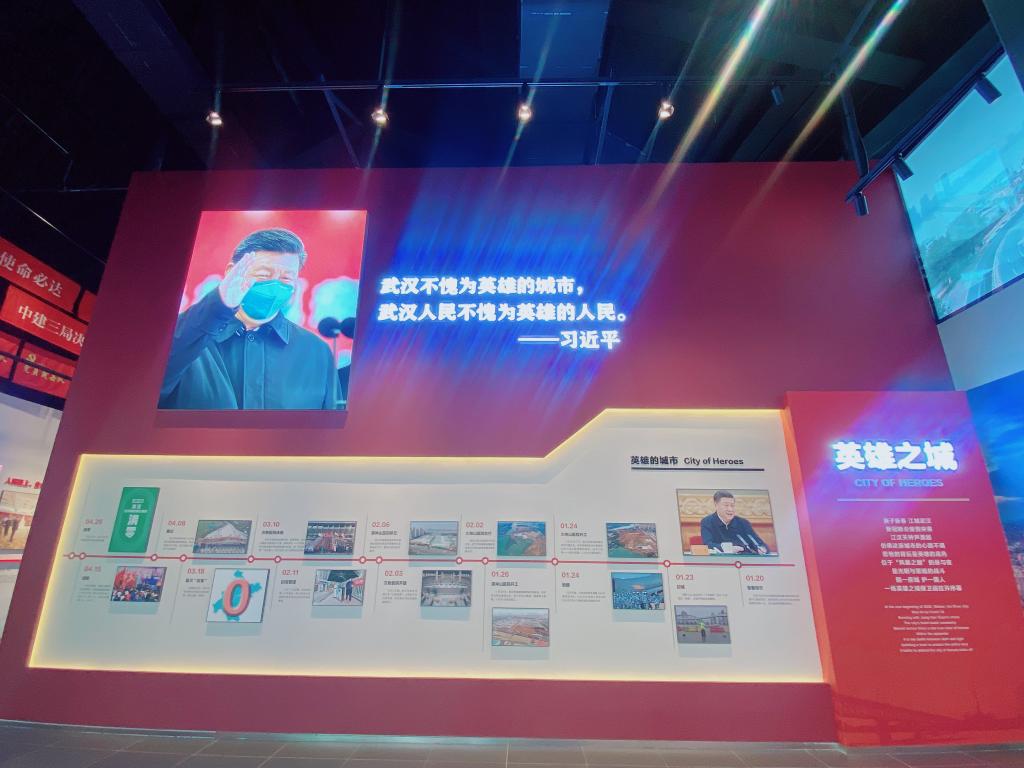 接下来大家一起来到“火神山”“雷神山”医院建设纪实展馆。庚子新春,江城武汉,新冠肺炎疫情突袭,江汉关钟声激越,仿佛这座城市的心跳不竭,悲怆的背后是英雄的底色,位于“风暴之眼”的昼与夜,是光明与黑暗的战斗,隔一座城,护一国人,一场英雄之城保卫战拉开序幕。这里再现了在党中央领导下,“英雄的城市,英雄的人民”,同心战疫的恢宏场景,展现了社会主义制度优越性迸发的磅礴伟力。