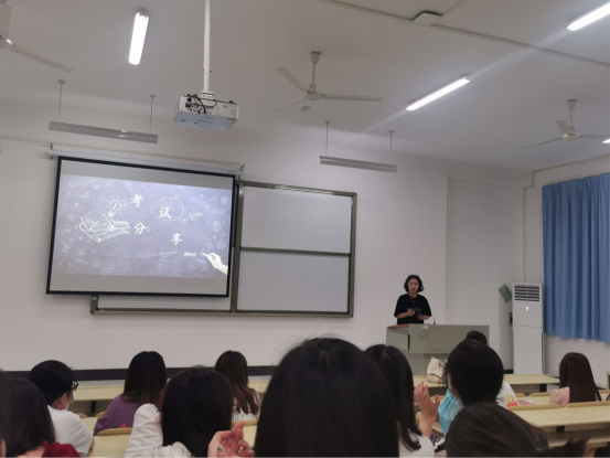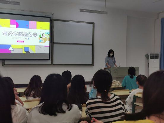 首先,唐映安学姐结合自己专升本的备考经历,分别从报考院校及专业、考试科目、考前资料收集、假期参加校外辅导班、专升本考试的相关政策及学院近两年的考试情况进行了介绍,并鼓励同学们坚定信心。