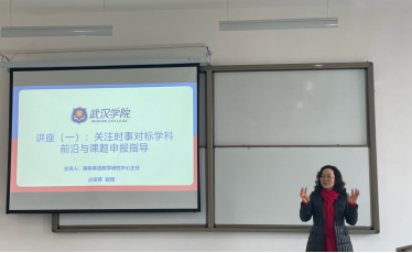 占俊英教授讲座的主题为“关注时事对标学科前沿与课题申报指导”。占教授结合自身申报经验,从选题、申报书撰写等方面进行了指导。认为好的选题是高度概括的,体现作者的学术功底、学科意识、方法论意识等。通过选题实例介绍了如何从翻译学、语言学、外语教育视角切入大数据、人工智能、国家安全、企业形象、国家形象、品牌翻译等热门研究领域进行研究。鼓励老师们在新文科视野下,从自身的研究兴趣和研究方向出发,结合时事热点,对标学科前沿,深挖现有研究课题,形成高质量选题。随后,占教授对项目申报书中的文献综述、研究方法等进行了具体的指导。讲座深入浅出,既有理论高度,又有现实指导性,让与会教师们备受鼓舞。