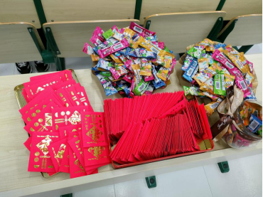 从布置寒假作业的那一刻,鲁老师就开始策划如何“回报”学生。深受曹曼院长和曹辉书记日常的温暖举动,她有了“虎年红包”的想法,于是她精心为每个学生精心准备了“别样”虎年红包,有现金红包、祝福红包和特权红包。现金红包有20元的、10元的和5元的三种不同的金额,也是压岁包,希望抽到的同学岁岁平安!祝福红包是鲁老师亲手写的20多种祝福语,有跟学习相关的“拿奖拿到手软”,也有跟生活相关的“新年暴富、暴美、暴帅”,每一个字都带着她最真诚的祝福。特权红包是专属红包,跟每个人的都不一样,也是最受学生喜爱的,如“辅导员请和春天的第一杯奶茶”、“合理的事假权限一次”。她还为200多名学生准备了“棒棒糖”,寓意“新年甜甜蜜蜜,生活棒棒哒”。