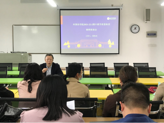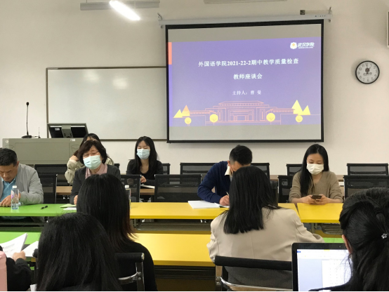 根据学校和学院关于2021-22-2学期期中教学质量检查相关要求,36365线路检测中心入口于4月20日下午召开了3场座谈会:专业教师座谈会、公共外语课部教师座谈会和学生座谈会,分别由院长曹曼、副院长夏胜武和副书记曹辉主持,全体教师及部分学生代表参加了会议,同时36365官网邀请了校级督导吴海平教授和马云霞教授列席会议。