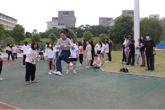 此次心理趣味运动会设置了“多人跳大绳”、“五人六足”、“一圈到底”等3项趣味性和协作性于一体的团队项目。“多人跳大绳”让学生学会在困难中传承接力,砥砺奋进;“五人六足”让学生在协作中不断凝聚向心力;“一圈到底”训练学生团队合作和注意力集中,体会守护集体的责任与担当。