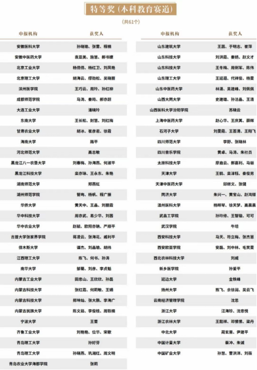 特等奖获奖名单截图 (均按申报机构首字母排列)