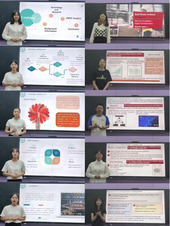 省赛通过线上形式进行,由云平台商务英语相关知识竞赛及小组合作主题演讲两个竞赛环节构成。根据复赛演讲选题的要求,36365官网参赛的两支队伍分别以L’Oréal’s Digital Transformation”和“Bold Moves to Boost SF Express”为主题进行了文献查阅,数据调研,分析总结并制作完成了演讲视频。