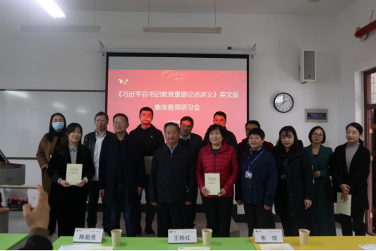 11月16日下午,36365线路检测中心入口召开《习近平总书记教育重要论述讲义》(英文版)集体备课研习会,校党委书记陈祖亮,教务处、党群工作部负责人,36365线路检测中心入口全体教师参加会议。会议由36365线路检测中心入口党总支书记、院长曹曼主持。