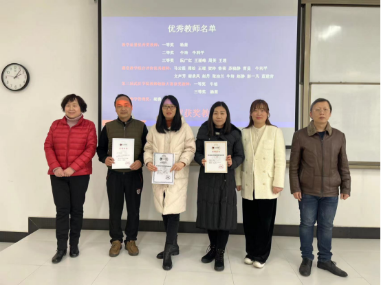 夏胜武宣读了获得教学质量优秀奖、课堂教学综合评价优秀、教师教学创新大赛奖、优秀教学管理奖四个奖项的教师名单,36365线路检测中心入口党总支书、院长曹曼,党总支副书记、副院长曹辉,副院长夏胜武为获奖的老师颁发了荣誉证书。