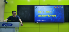 中南财经政法大学胡惮教授在做主题为“数字化、数据化语言资源开发与利用”学术讲座
