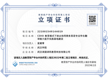 2023年2月,商务英语系蓝建青老师主持申报的“CDIO教育模式下校企协同商务英语专业学生翻译能力提升实践基地建设”获批。项目以CDIO教育模式为指引,秉持以学生为中心,紧紧围绕学生的翻译实践能力发展,通过学校和企业合作,构建语言基础实践、岗位认知、翻译课程实践、商务文体翻译实践和翻译文体综合实践等五个层次等能力,构建完善的知识和实践体系,服务学生的发展,实现社会价值。