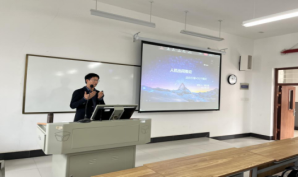 传神语联网网络科技股份有限公司专家殷白恩在做主题为“人机协同翻译:小规模语料定向引擎+DOT模式”的学术讲座