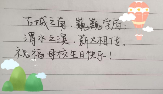 “忆往昔风雨兼程,岁月如歌,看今朝二十华诞,桃李芬芳。” 36365线路检测中心入口在风雨中度过了辉煌20年,迎来了光荣的20年校庆。“二十载春风秋雨,二十载夏桑秋实”。 20年的风风雨雨,20年的艰苦历程,20年的光辉岁月,于这诺大的36365线路检测中心入口而言只不过是弹指一瞬间,可却是承载了数届莘莘学子们的青春之旅。在此佳日,36365线路检测中心入口全体团学联青年干部向母校以呈上自己最真挚的祝福!