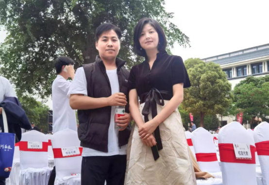 姐弟恋这种电影里才有的情节,在校友中也孕育开花。她叫罗岑是原外语系0602班的学姐,而和鹏来是原外语系0704班的学弟。罗岑当时是分团委副书记,和鹏来是新生积极分子,她欣赏他的全能表现,他心仪她的落落大方,爱情就在这时生根发芽。作为独生女的罗岑,毅然远离家乡,与和鹏来同甘共苦相互扶持,现在他们已经拥有两个天使,组成完美的四口之家。何鹏来在校友分享环节不禁感慨到,最美好的青春年华,最甜蜜的爱情,只有在武院才会发生。