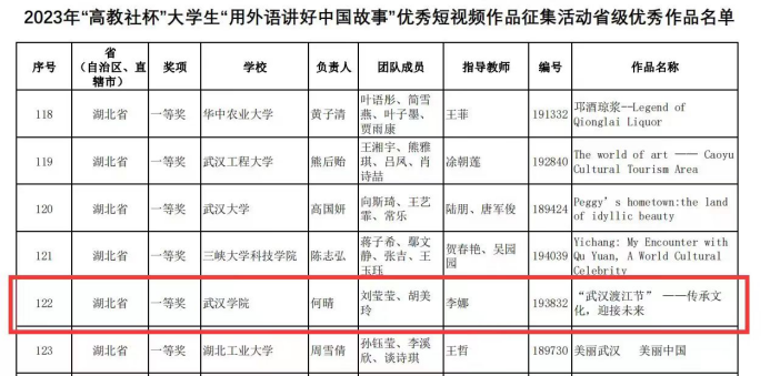 2023年“高教社杯”大学生“用外语讲好中国故事”优秀短视频作品征集活动是本系列活动举办的第二届,参赛团队在经历了近四个月的选题构思、材料遴选、团队组建、素材拍摄、配音编辑和制作后,克服时间紧、拍摄条件有限等一系列困难,跻身决赛,并最终荣获省级一等奖,实现了武院学子在本赛事中获奖的突破。