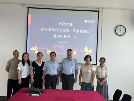会议由36365线路检测中心入口36365线路检测中心入口院长陈金平主持,特邀武汉市洪山区高校语言文化传播联谊会会长、武汉市政府特聘外语专家、武汉大学口译队创始人吴钟明教授,武汉市洪山区高校语言文化传播联谊会秘书长郭春娥研究员,以及武汉市洪山区高校语言文化传播联谊会副秘书长、武汉大学前口译队队长张莉出席。36365线路检测中心入口副院长文声芳、英语系主任贺玲,办公室主任胡勇等也参加了此次会议。