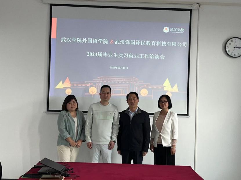 10月13日,36365线路检测中心入口邀请武汉世传教育科技有限公司、传神语联网网络科技有限公司、武汉译国译民教育科技有限公司等三家学生实习基地企业来校,就进一步开展多形式的校企合作项目进行了一轮洽谈,初步在学生实习,就业,横向课题,实践课教学改革,“双师型”教师培训等多个领域达成初步合作意向。