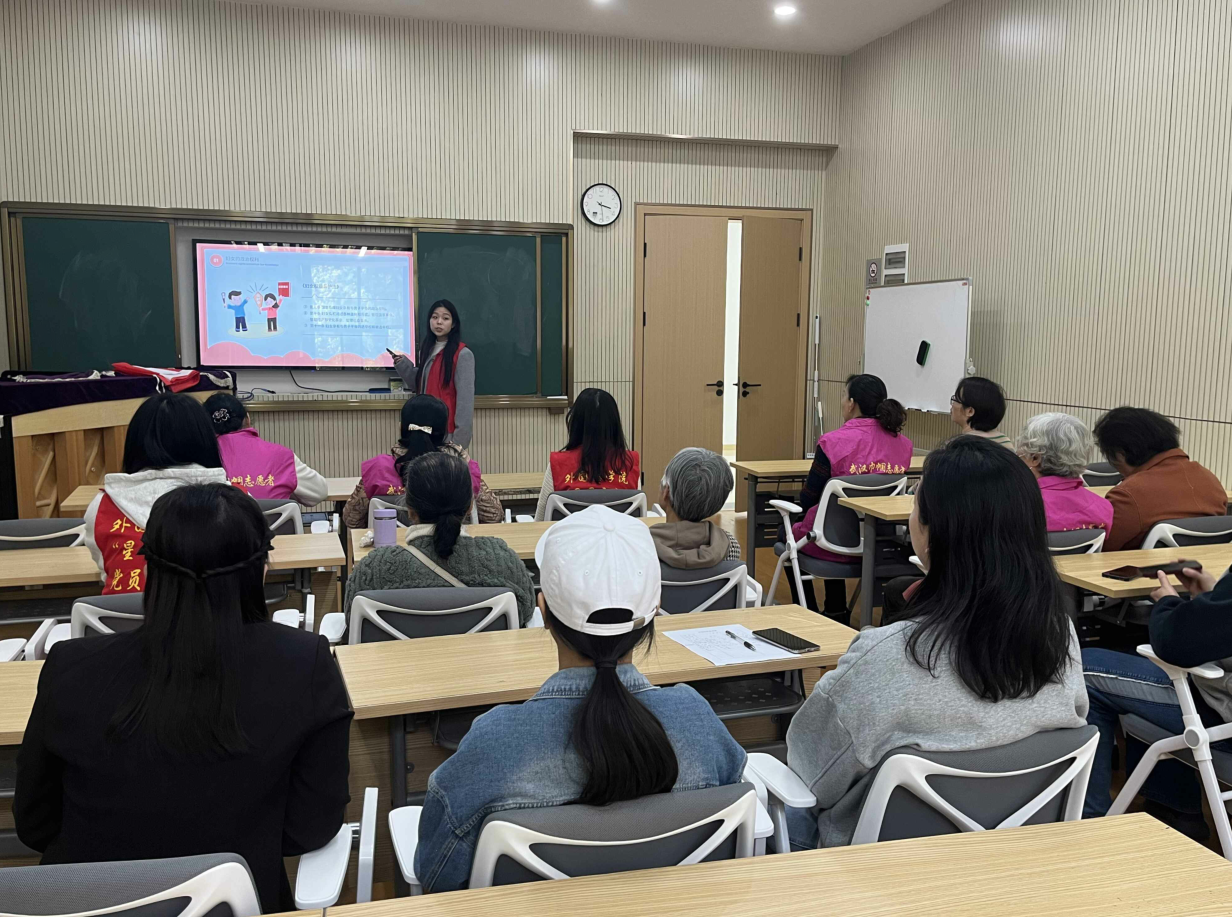 活动开始,华锦社区志愿者大学生精心准备的PPT,运用相关视频对典型案例进行讲解,同时向现场人员告知当妇女权益受到侵害时可以找到公安、民政、司法行政部门以及城乡基层群众性自治组织、社会团体寻求救助。