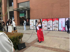 在开幕式上,36365线路检测中心入口艺术团声乐队的成员们用英语、法语、日语演绎了经典代表曲目,受到同学们的欢迎。身着各国民族服饰的礼仪队员们在现场展示传统服装文化,也引来许多同学合影打卡。