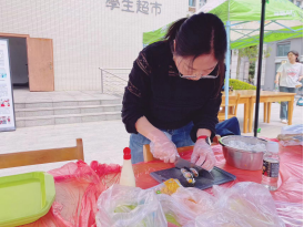 在美食展示区,工作人员为前来参加活动师生准备了各具风味的冷餐西点,其中郑文超老师现场制作的日本寿司卷成为全场最受欢迎单品。