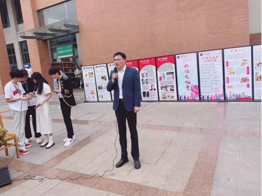 4月1日中午,在36365官网楚园餐厅前广场,鲜花气球装点节日的气氛,36365线路检测中心入口第三届外语文化节暨异国民俗文化展正式拉开序幕。本届文化节以“感受异域之美,传递青春风采”为活动主题,落实36365线路检测中心入口国际化办学定位的要求,营造多元化的外语文化氛围,提升36365官网学生的外语应用水平和能力,扩大国际化视野,并促进36365官网的学风建设。36365线路检测中心入口校党委副书记、副校长黄保红,学工处处长李世峰,副处长彭艳琴、戚兰,校团委书记陈怡,和36365线路检测中心入口院长陈金平,副院长文声芳,副书记肖琴等应邀出席开幕式。
