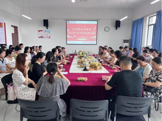 为营造浓厚的节日氛围,学院精心策划,253会议室被布置得温馨雅致,教师节主题宣传牌醒目而精美,桌上摆满了香气四溢的比萨、鲜甜的水果,冰镇咖啡和茶水,以及各式精致点心,为这场盛会增添了别样的色彩。庆祝活动在全院教师们的欢声笑语中拉开了序幕。