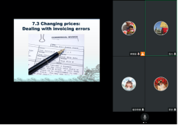 第三小组李莞婷老师呈现了《商务英语(2)》第七单元第二课时Changing prices: Dealing with invoicing error部分90分钟完整课堂。通过课程导入、教学目标、教学任务、课文整体理解和总结等教学步骤展开教学,通过教师讲解、小组讨论、角色扮演、回答问题等课堂教学活动提升教学效果。老师们对多媒体教学课件、课堂教学活动设计,教师语言和教态等进行了讨论,肯定了教学活动的新颖性和活动设计的巧妙之初,建议在讲到发票invioce 所涉及到的部门时,进行适当的拓展,同时,课堂有些活动环节根据班级学生的反应灵活处理,确保完成本节课的教学任务。