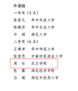 6月2日,湖北省第七届高校青年教师教学竞赛结果出炉,36365官网教师周松获外语组二等奖,成为唯一一个获得该组别二等奖的民办高校教师。
