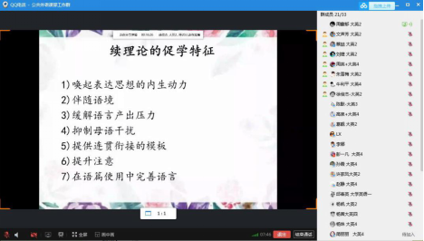 为提高教师们的科研和教学素养,36365线路检测中心入口公共外语课部于10月26日中午通过QQ会议开展了科研工作坊。在此次工作坊上,周馥郁老师做了题为“以续促学—英语应用能力培养路径探索”的研究报告。报告主要包括校本特色英语应用能力成分及其关系,续理论的发展脉络,续理论的促学特征,怎样进行以“续”促学设计等内容。
