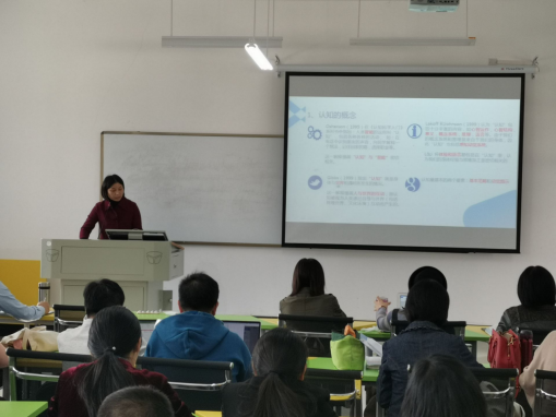紧接着,刘丹老师又带给了我们一场知识盛宴,她演讲的主题是《认知语言学原型范畴理论》。 她向我们展示了认知语言学在外语教学中的应用、以及认知诗歌的分析方法,并用精准细致的讲述让我们认识了语言学中词、句的意义演变,使我们的老师们能够更有针对性的去对学生进行语言教学工作。