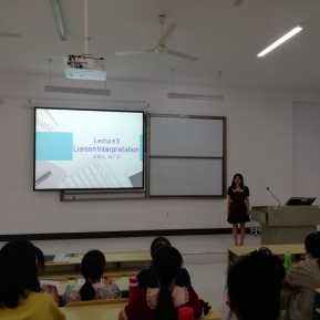 阮广红老师主讲的内容是Liaison Interpretation。阮老师首先介绍了本次课程的内容:词汇积累、口译练习、重点句子讲解、内容拓展、随堂测验,环环相扣,提高学生的口译能力。在重点句子讲解部分,阮老师将理论与实际相结合起来,生动形象地解释了中英语序的知识点及其在中英翻译中的应用,用丰富的例子和教学互动营造了良好的课堂氛围,最后通过测验及时检验学生的学习成果。