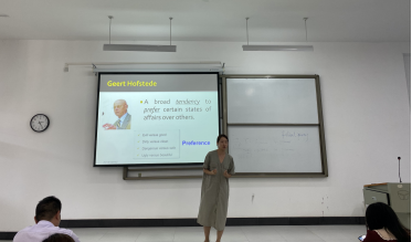 鲁萌老师主讲的内容是Cultural Patterns。首先,鲁老师通过图片展示、格言赏析的方式在与学生的互动中解释了价值观的含义;随后,鲁老师对价值观的具体内容进行了讲解,并通过课堂讨论的方式让学生对价值观有一个更深的认识;最后,鲁老师结合克鲁克霍恩和恩卓特贝克的基本价值取向这一文化模式对人性、人与自然的关系、时间概念以及社会关系进行了分析。整个课堂互动丰富,图文并茂,为学生更好地理解不同的文化模式提供了方向。