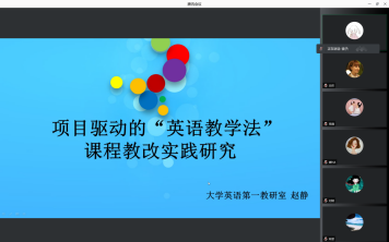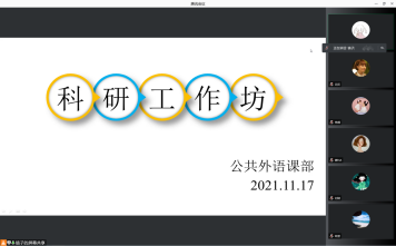 11月17日中午1点,公共外语课部在腾讯会议开展了线上科研工作坊活动,本次科研工作坊主题为项目驱动的“英语教学法”课程教改实践研究,由公共外语课部赵静老师主讲,课部全体教师参加了本次活动。