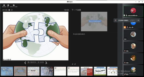 为切实做好课前备课工作,提高课堂教学效果,大学英语第一教研室于3月31日19点在腾讯会议(ID号661-888-203)举行了备课授课分享会。本次分享由徐俊杰老师主讲,内容为《Globalization》,教研室全体教师参加。