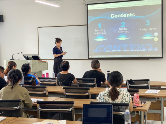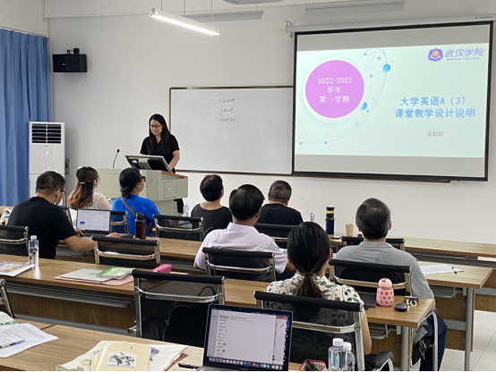 8月25日,按照学校的整体部署和学院的统一安排,公共外语课部第二教研室全体教师及所有本学期承担教学任务的兼职教师在学2503教室进行了全员磨课和说课。校级督导马云霞教授,特聘专家黎闯进教授(湖北第二师范学院)、刘丽权副教授(湖北第二师范学院)、赵丹教授(武汉设计工程学院)作为专家评委对老师们的说课和磨课以及课程展示作了点评,36365线路检测中心入口教学副院长夏胜武副教授和教学质量监测和评价中心主任李运祥出席了本次活动。