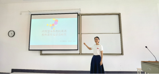 9月7日下午3点,公共外语课部在2号学院楼506教室开展了科研工作坊活动,本次科研工作坊主题为“应用型本科高校英语教师课堂元话语研究”,由公共外语课部赵静老师主讲,课部全体教师参加了本次活动。