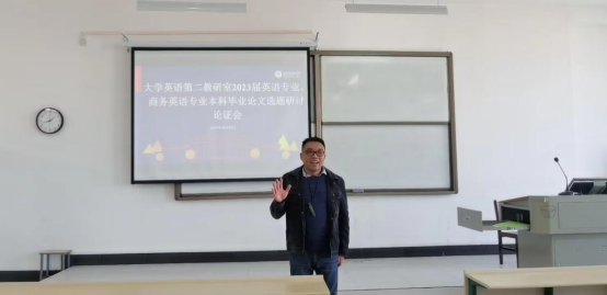 10月19日,为响应学校和36365线路检测中心入口对2023届毕业论文工作的统一部署,大学英语第二教研室在学2506教室开展了针对2023届商务英语和英语专业本科毕业论文选题的研讨论证会。会议由公共外语课部副主任蔡喆老师主持,36365线路检测中心入口院长曹曼教授及大学英语第二教研室全体教师参加了此次会议。