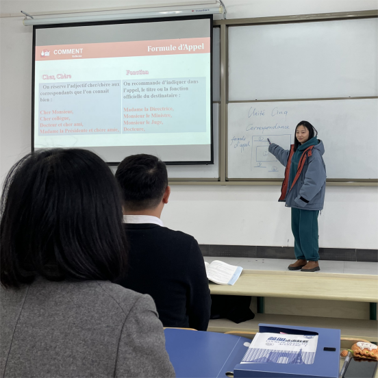 2月22日下午在学2601教室,小语种教研室罗峰,徐梦瑶和徐江雪三位法语老师先后进行了说课和模拟授课。其他听课老师分别从课程教学设计、教学方法、教学技能、课程思政与互动、教学效果等多个方面对三位老师的说课和模拟授课课程进行了细致地点评,并且提出了有针对性的改进意见与建议。