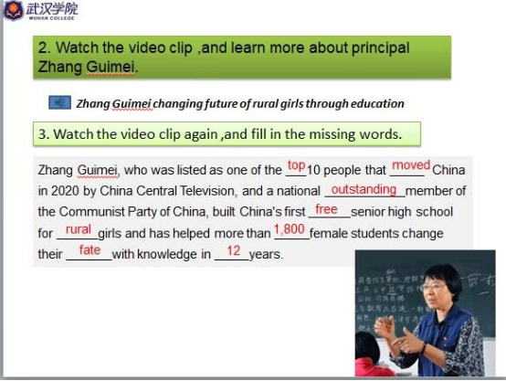 本期磨课依据不同班型,共分两场进行。老师们精心设计、细心安排、耐心打磨。简笑天老师采用任务型教学模式,精心设计教学环节,巧妙导课,读思联动,引导学生积极表达观点。罗霞老师课堂活动紧凑,注重问题的引导和启发。夏君老师的小组合作活动,注重在实际中解决问题。吴爱华老师在精心挑选授课内容的同时,自然地融入思政元素,在教授语言技能的同时渗透正确的社会主义核心价值观,实现价值引领和语言习得的有机结合。魏红梅老师语言情景的精心创设、课堂活动的巧妙安排、教学课件的有效辅助,给老师们留下了深刻印象。