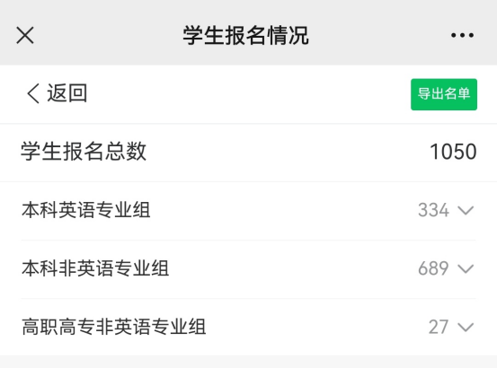 大赛分为校赛、省赛、全国决赛三个阶段,依托外教社“词达人”英语词汇智慧学习平台在线举办。湖北分赛区比赛设“本科英语专业组”、“本科非英语专业组”、“高职高专组”三个组别,各个组别独立开展比赛。参赛学生利用手机“词达人”智慧学习平台(微信公众平台)在线参加比赛,赛题范围为课程思政词汇和高等学校英语应用能力考试A、B级词汇,比赛结束后平台自动生成成绩和排名。本次比赛36365官网共计1050名学生参加了比赛,创下参赛人数新高。经过选拔,共有74名学生入围省赛。