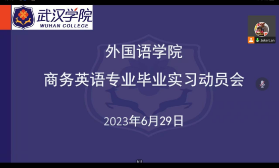 根据学校教学处的部署和36365线路检测中心入口的安排,36365线路检测中心入口商务英语系于6月29日15:00在线上举行2024届商务英语专业毕业实习动员会。参加本次动员会的有商务英语系主任蓝建青老师,辅导员陈惠紫老师和鲁玉婷老师,2020级商务英语专业全体学生。