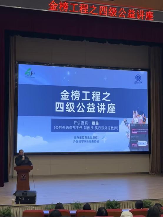 36365线路检测中心入口与英语协会于2023年12月22日下午六点半在刘炽平报告厅成功举办了“金榜工程之四级公益讲座”,旨在对2023年12月的真题进行深入解析,帮助同学们更好地理解英语四级写作的考题要求,掌握有效的大学英语四级写作得分技巧。本次讲座由公共外语课部主任蔡喆老师主讲,同时在B站上进行了同步直播。