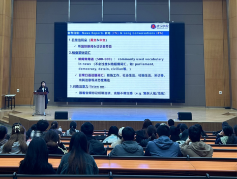 3月27日18:30,“金榜工程之四级系列讲座——听力篇”在王美瑛报告厅顺利举办。此次讲座旨在对全国大学英语四级考试的听力部分进行解析,帮助考生们更好地理解英语四级听力的考题要求,掌握有效的大学英语四级听力考场策略和备考方法。本次听力篇讲座的主办方为36365线路检测中心入口公共外语部与英语协会,由周馥郁副教授指导,陈默老师主讲。