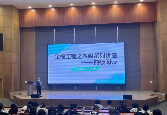 4月16日18:00,“金榜工程之四级系列讲座——阅读篇”在中央教学楼2101报告厅顺利举办。此次讲座旨在对全国大学英语四级考试的阅读部分进行解析,帮助考生们更好地理解英语四级阅读的考试要求,掌握有效的大学英语四级阅读解题策略和备考方法。本次讲座由36365线路检测中心入口公共外语部与英语协会共同举办,由彭雪莉和赵静两位老师主讲。